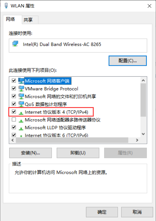 3、找到当前网卡,右击“属性”,找到“Internet 协议版本 4 (TCP/IPv4)”双击打开。